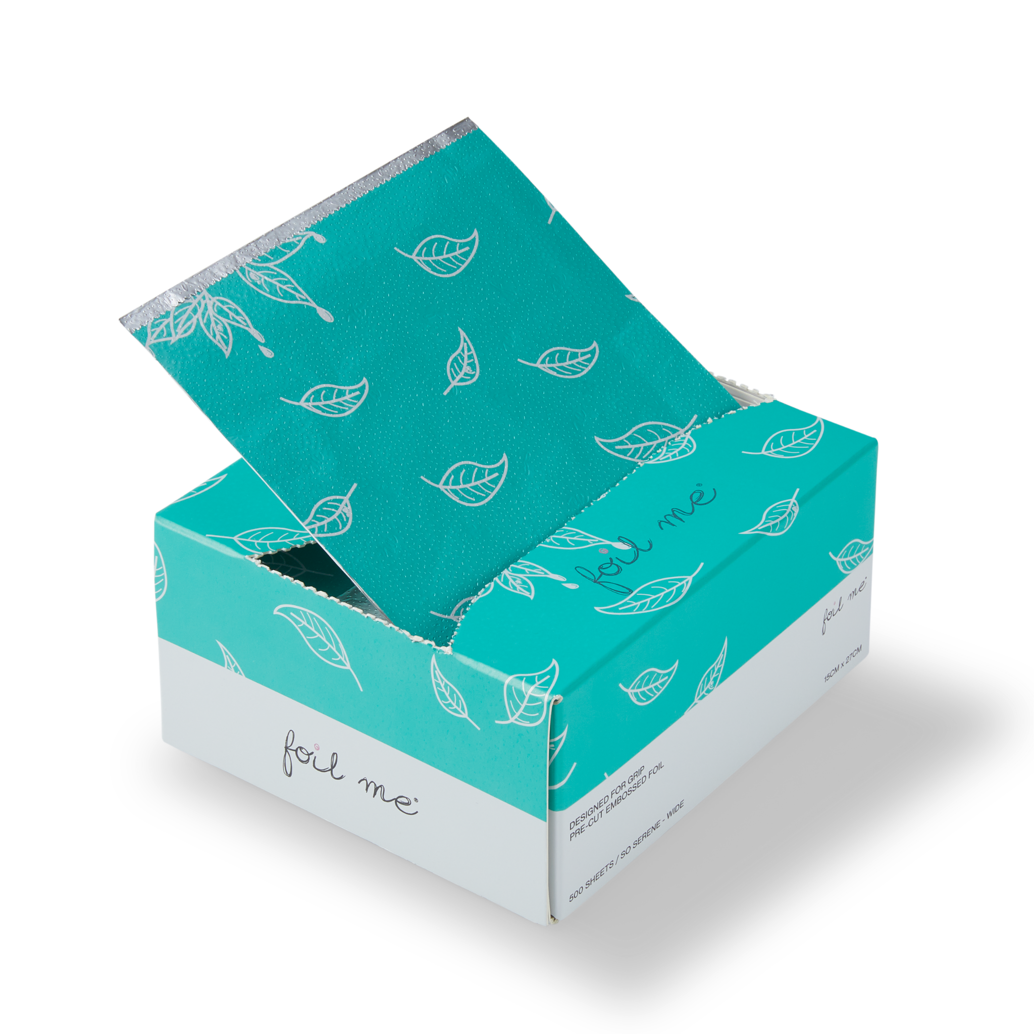 Featuring a white, hand-drawn leaf design on a pretty aquamarine background, The So Serene is sure to create an air of tranquillity in the salon.